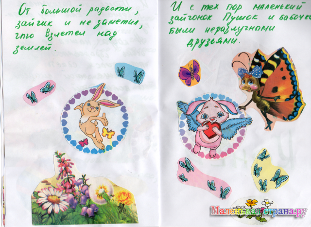 От большой радости, зайчик и не заметил, что взлетел над землей. И с тех пор маленький зайчонок Пушок и бабочки были неразлучными друзьями.