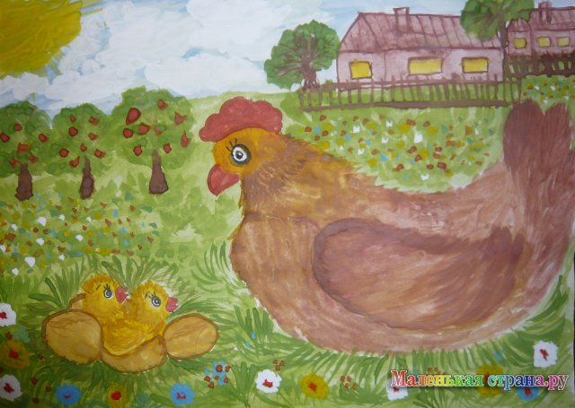 «Цып-цып, мои цыплятки, развесёлые дружочки, мои жёлтые комочки»,