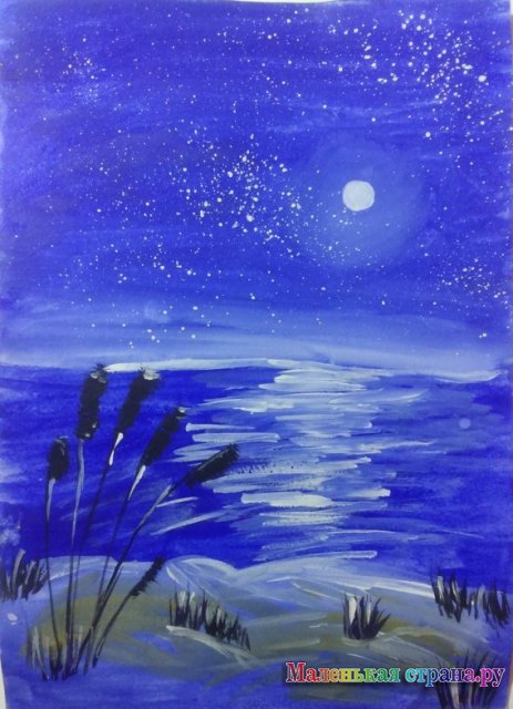 лауреат - Филатова Мария, 11 лет, «Озеро в ночи», МБУ ДК «Крылья Сибири», Образцовая студия изобразительного искусства «Оранжевое солнце» г. Обь, педагог Кулакова Любовь Андреевна;