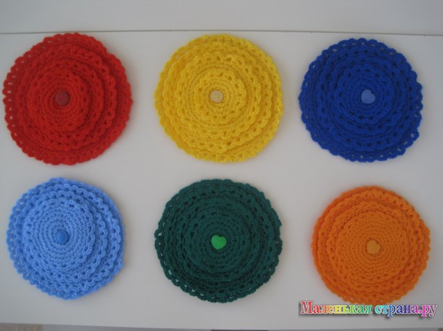 Материал: Кружки разной величины и разных цветов: красный, синий, зеленый, желтый и т.д.