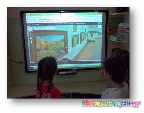 В ходе реализации программы был разработан перспективный план виртуальных экскурсий, который состоит из трех блоков – осенний, зимний, весенний. Например: в рамках тематической недели «Осень» дети посещают виртуальную экскурсию по залам Третьяковской галереи (совместный проект с «Гугл»), рассматривают картину И.И. Левитана «Золотая осень» (зал №3) и затем создают рисунки «Лес, точно терем расписной…» или в рамках тематической недели «День защитника Отечества» дети гуляют по залам Третьяковской галереи рассматривая картины В.В. Васнецова “Три богатыря”, А. П. Бубнова “Утро на Куликовом поле” (зал № 5) и делятся своими впечатлениями в рисунках «Богатыри земли русской» и т.д.