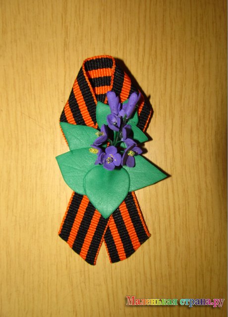 "Брошь из георгиевской ленты и фоамирана "Сирень победы"
